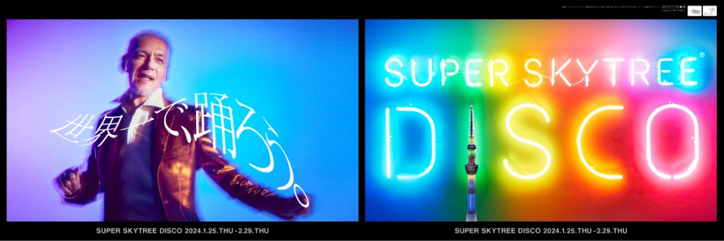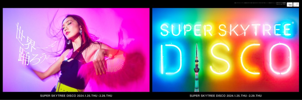 2017年に立ち上げた「世界一高いお立ち台」スーパースカイツリーディスコが5年ぶりに復活。2024年のコンセプトは「世界一で、踊ろう。」、老若男女が踊れる唯一の場所で全6回満員御礼となった。